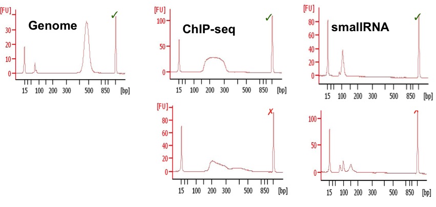 | Examples of Bioanalyser libraries (good and bad) from CRI |