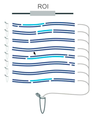 | The 8 digests cover the target region multiple times, the light blue fragemnts will be sequenced |