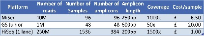 How many samples can you analyse in a run: This is very much an “it depends†question. The sequencing platform used, coverage required, number of samples pooled and number of amplicons sequenced all impact the final number it is possible to run in a given sequencing system. The same issues affect how much the sequencing is going to cost per sample but this can become incredibly cheap on a per sample or per amplicon basis.
