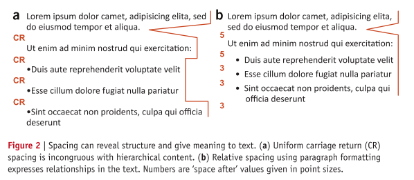 Whitespace: Absence of colour is important. Many scientific presentations and posters covey too much information and don’t have enough empty page to allow readers to see how the text should flow.