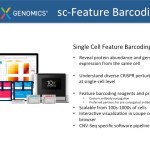 Combined single cell with conjugated oligo-antibodies to measure surface proteins and read out on 10X library prep. Feature Barcoding product in 2H 2018 (see 16:10 screenshot). New protocols for custom oligo conjugation, compatible partners releasing antibody sets, software, demo data etc.(see 16:11 screenshot) 1st demonstration is spiked in EBV peptide